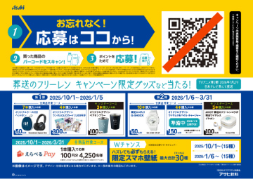 第1弾<2025年10月1日(水)~2026年1月5日(月)>で獲得したポイントで2026年1月6日(火)以降の第2弾賞品にご応募いただくことも可能です。
