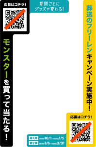 上記と同内容が掲載されている、別デザインのキャンペーン告知が設置されている場合が一部ございます。